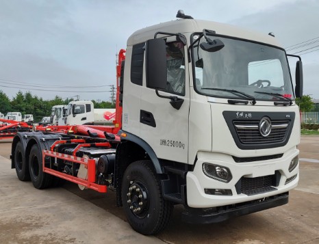 東風(fēng)天錦后雙橋改裝的勾臂垃圾車(chē) 整車(chē)型號(hào):HDW5251ZXXDF6型車(chē)廂可卸式垃圾車(chē)