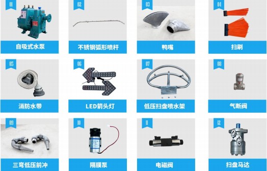 角噴:壓力強,流量大,可清洗道路標線、路沿,高效,便捷。