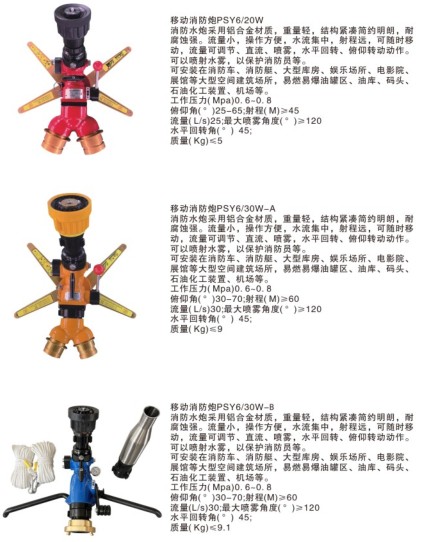 消防水炮采用鋁合金材質(zhì),重量輕,結(jié)構(gòu)緊湊簡約明朗,耐腐蝕強。流量小,操作方便,水流集中,射程遠,可隨時移動,流量可調(diào)節(jié)、直流、噴霧,水平回轉(zhuǎn)、俯仰轉(zhuǎn)動動作。可以噴射水霧,以保護消防員等。