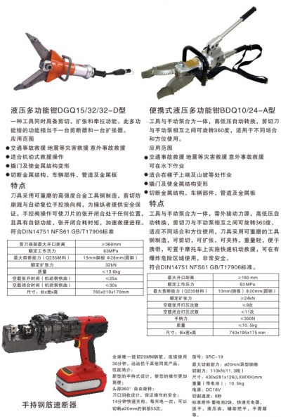 液壓多功能鉗DGQ15/32/32-D型 一種工具同時具備剪切、擴張和牽拉功能。此多功能鉗的功能相當于一臺剪斷器和一臺擴張器。