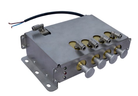 將緊急切斷閥自動系統(tǒng)裝于本車工具箱內(nèi),并固定好螺絲,接入電源,DC12V-DC24V均可使用,紅色接ABS第1腳常電,黑色接ABS第3腳(接負極),2個進氣口(1和2)分別接入油水分離器(1),緊急關(guān)閉口(3)接入尾部緊急按鈕閥(3),主閥口(4)接入油氣回收接頭(4),子控閥接入對應(yīng)的緊急切斷閥
